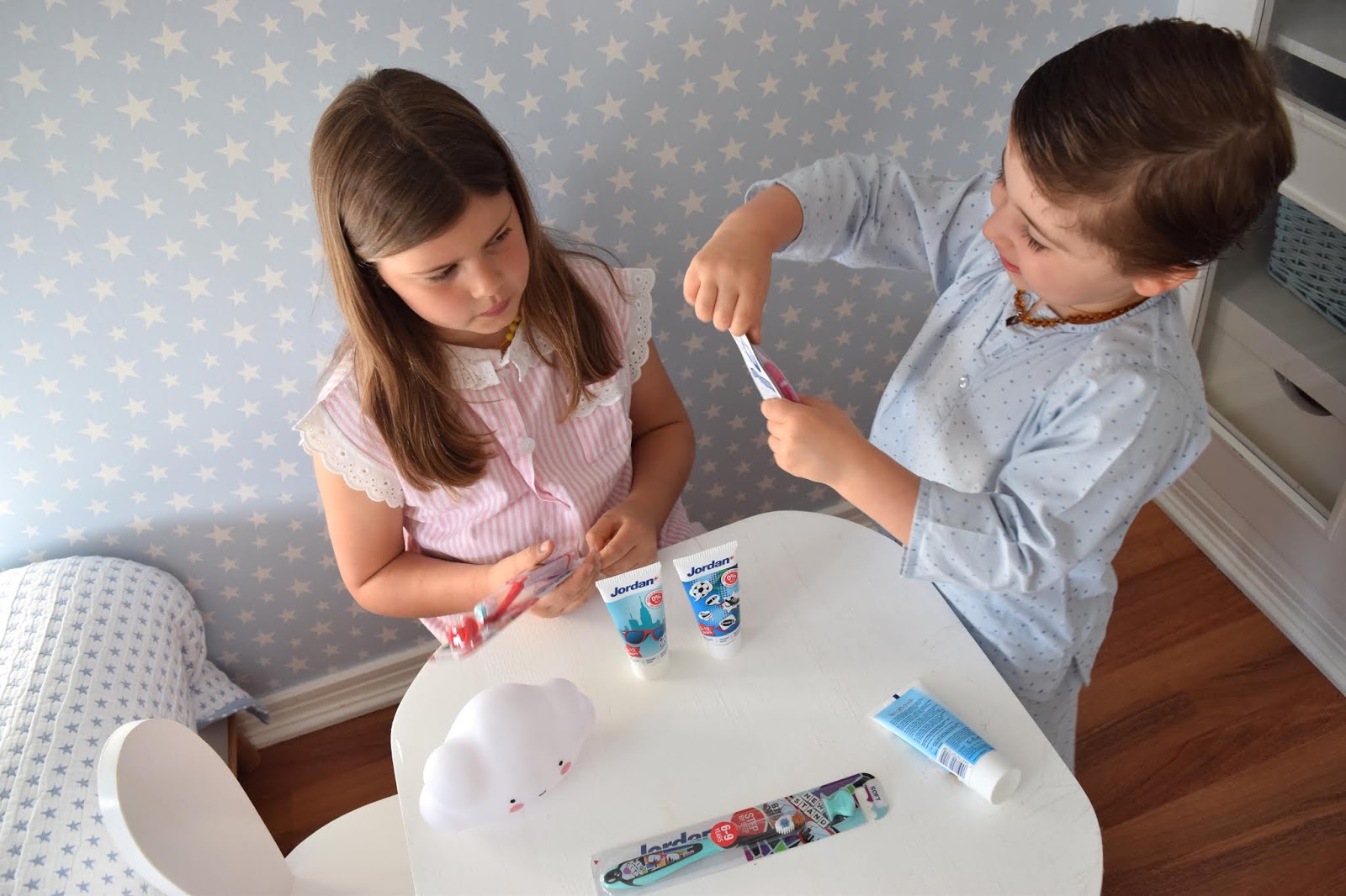 As rotinas cá em casa implicam, como é normal, a lavagem dos dentes, nomeadamente de manhã, depois do pequeno-almoço, e à noite, antes de ir dormir. Se com o Salvador e a Carminho esta tarefa foi fácil de implementar, com o Vicente não posso dizer o mesmo. Desde cedo que o Vicente foge da escova e da pasta de dentes, sem eu perceber ao certo o motivo, mas na realidade é sempre uma luta para me deixar lavar-lhe os dentes. No colégio, ainda assim, esta tarefa parece ser mais tranquila, imagino que pelo exemplo dos restantes amigos. Esta semana recebemos em casa escovas e pastas de dentes da Jordan, uma marca Norueguesa que é especialista em higiene oral para crianças, e o Vicente adorou! Ficou excitadíssimo e nessa noite deixou escovar os dentes com a maior das facilidades, eu nem queria acreditar! A Jordan tem escovas e pastas adaptadas às várias idades das crianças, dos 0 aos 12 anos, e uma das suas grandes mais-valias é o facto das pastas não conterem sulfatos. Os preços são acessíveis e os produtos estão à venda no Continente. Aproveito para partilhar convosco que até dia 29 de julho, a JORDAN está com uma promoção de 30% em todos os produtos nas lojas Continente. Um ótimo pretexto para experimentar!